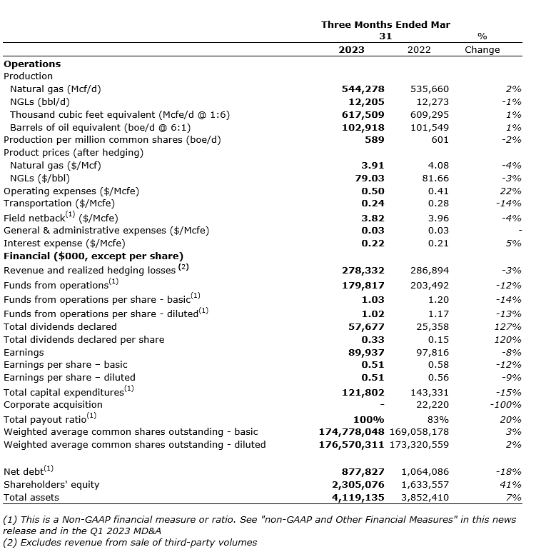 PEYTO REPORTS STRONG Q1 2023 CASH FLOW DESPITE LOWER GAS PRICES