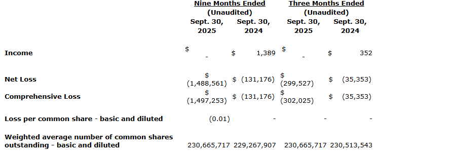 Plato Gold Corp. has released its nine- and three-month financial results for fiscal 2025 and 2024, as summarized in the attached table.