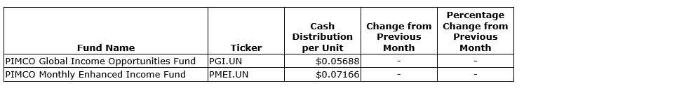 Unitholders are reminded that each fund offers a distribution reinvestment plan (DRIP), which will provide unitholders with the ability to automatically reinvest their distributions. Eligible unitholders are encouraged to contact the institution through which they hold their units to confirm enrolment procedures and timelines. A copy of the DRIP is available on the PIMCO website.