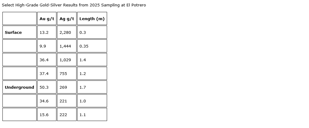 Jorge Ortega, PGeo, a qualified person as defined by National Instrument 43-101, and the author of the NI 43-101 technical report for the Potrero project, has reviewed, verified and approved for disclosure the technical information contained in this news release.