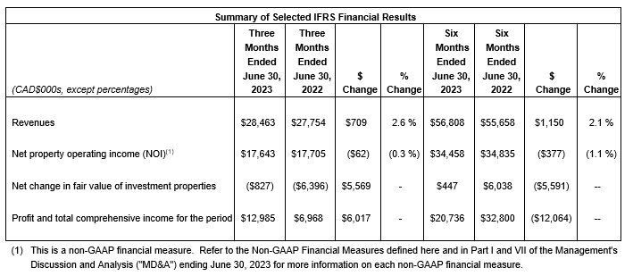 Plaza Retail REIT has released its financial results for the three and six months ended June 30, 2023.