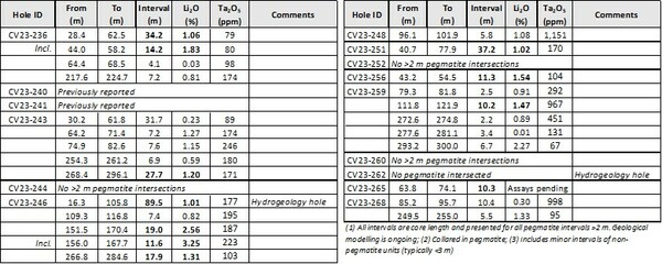 14.2 m at 1.83 per cent Li2O (CV23-236);