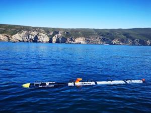 Figure 1: Kraken MP-SAS on Royal Netherlands Navy REMUS 100 heading out to REPMUS Naval Mine Warfare operating areas off Sesimbra, Portugal.