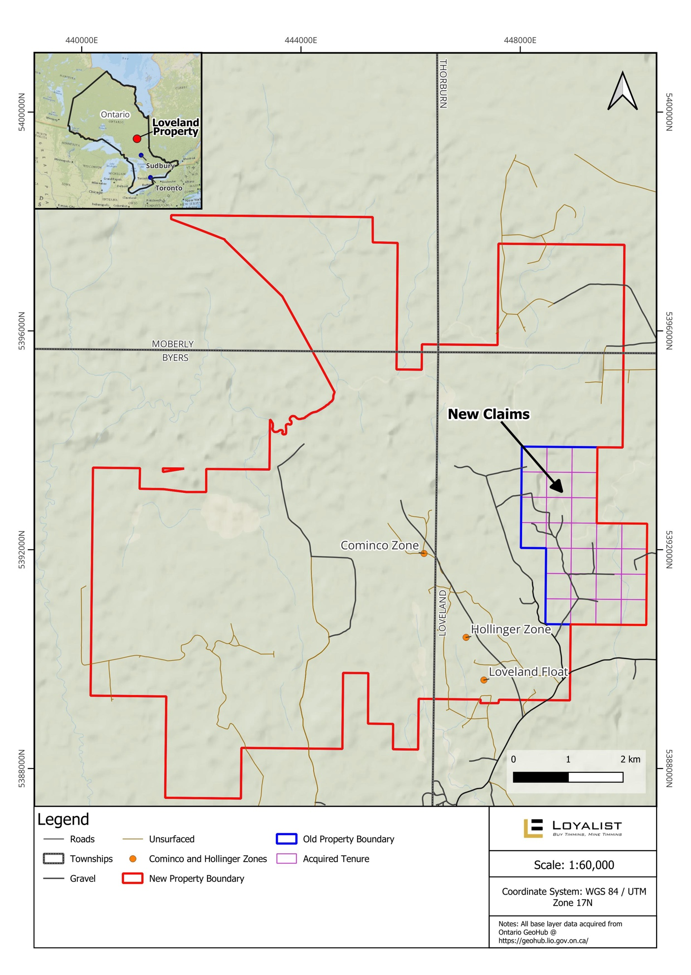 The newly staked claims strengthen Loyalist’s position in an area prospective for nickel, copper, and gold mineralization. They adjoin the Loveland polymetallic project, which the Company acquired in 2025 as part of its “Buy Timmins, Mine Timmins” strategy. This expansion increases the contiguous land package and enhances exploration potential along key geological trends in the Porcupine Mining Division.