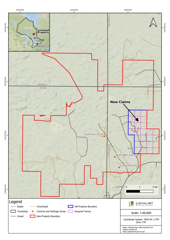 Toronto, Ontario – TheNewswire – April 13, 2026 – Loyalist Exploration Limited (CSE: PNGC) (“ Loyalist ” or the “ Company ”) is pleased to announce that it has successfully staked 26 new mining claims in Loveland Township, Ontario. These claims are contiguous with the Company’s existing Loveland Property (the “ Loveland Property ”), significantly expanding its footprint in the prolific Timmins Mining District. (see map below).