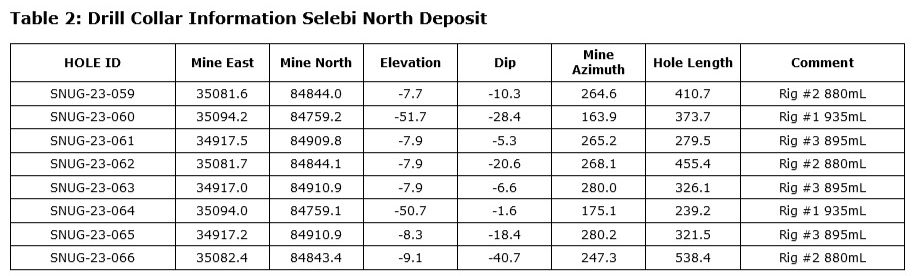 - SNUG-23-060 (South Limb-south/N2): 38.20 metres of 1.67% NiEq (1.06% Ni; 0.97% Cu; 0.06% Co)