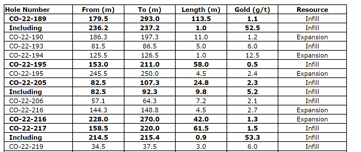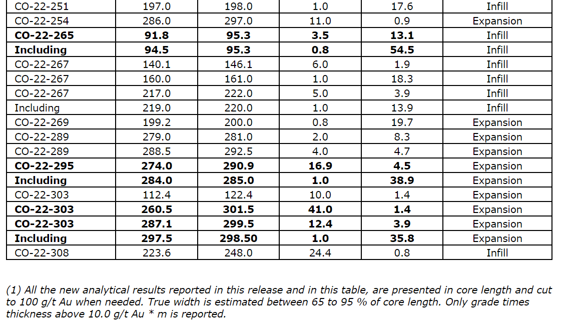 Selected drill results from the fall 2022 Courvan Southwest deposit drilling program are provided in an attached table.