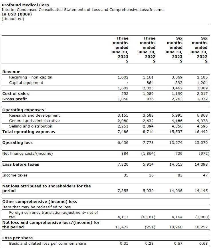 PROFOUND MEDICAL ANNOUNCES SECOND QUARTER 2023 FINANCIAL RESULTS