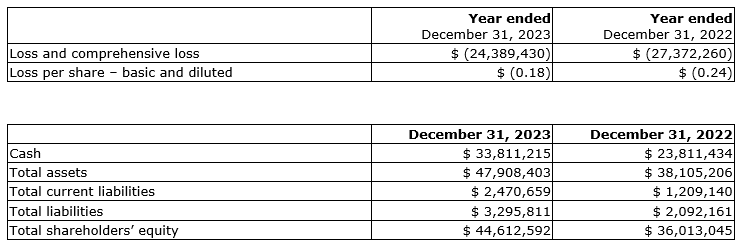 The attached selected financial data are summarized from the company's consolidated financial statements and related notes thereto for the three and 12 months ended Dec. 31, 2023, and 2022. A copy of the financial statements and management's discussion and analysis is available at the Prime Mining website or on SEDAR+.