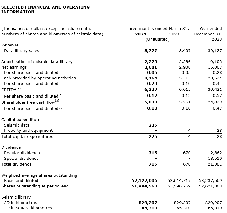PULSE SEISMIC INC. REPORTS Q1 2024 RESULTS AND INCREASES REGULAR DIVIDEND