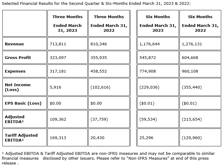 Revenue for the first six months of fiscal 2023 was $1,176,644 versus $1,276,131 in the first six months of fiscal 2022.