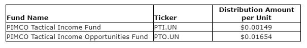 PIMCO Canada Corp. has declared special reinvested income distributions on the Class A units of certain PIMCO Canada closed-end funds. The reinvested distributions will be paid on Jan. 15, 2024, to the holders of record at the close of business on Dec. 29, 2023. The reinvested distributions will be reinvested in units of the applicable fund and the resulting units will be immediately consolidated so that the number of units held by each unitholder will not change. Unitholders holding their units outside registered plans will have taxable amounts to report and an increase in the adjusted cost base of their units.
