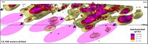 Figure 2. Interpreted high-grade gold shoots to be tested at the Lynx Gold Zone