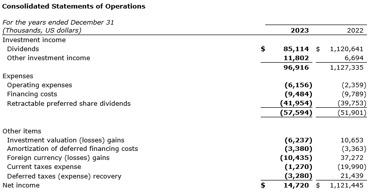 Partners Value Investments LP has released its financial results for the year ended Dec. 31, 2023. All amounts are stated in U.S. dollars.