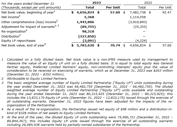 PARTNERS VALUE INVESTMENTS L.P. ANNOUNCES 2023 ANNUAL RESULTS