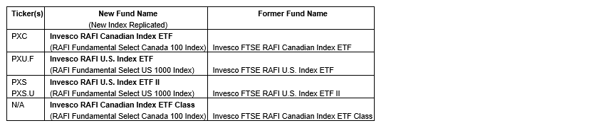 Securityholders of Invesco FTSE RAFI Canadian Index ETF, Invesco FTSE RAFI U.S. Index ETF, Invesco FTSE RAFI U.S. Index ETF II and Invesco FTSE RAFI Canadian Index ETF Class have approved changes to each of the funds' investment objectives, effective on or about March 24, 2025.