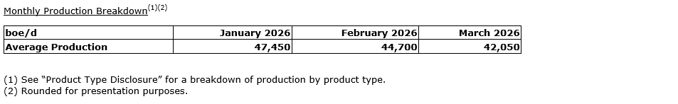 Q1 2026 average production was 44,735 barrels of oil equivalent per day (boe/d).