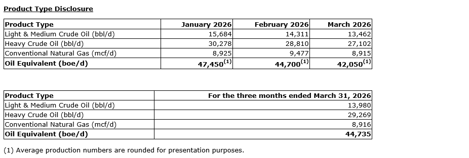 PAREX RESOURCES ANNOUNCES PRODUCTION UPDATE, AND TIMING OF Q1 2026 RESULTS AND ANNUAL GENERAL MEETING
