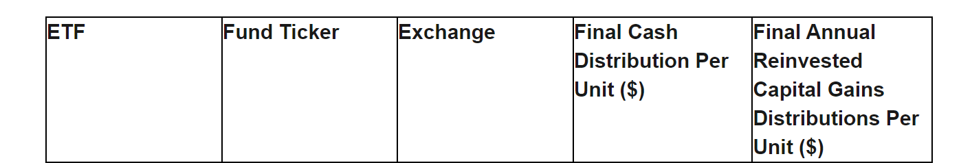 Details regarding the final per-unit cash and reinvested capital gains distribution amounts are provided in an attached table.