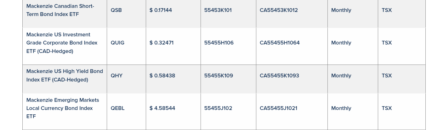 Mackenzie Investments has declared the November, 2023, monthly cash distributions for its exchange-traded funds listed in an attached table that trade on the Toronto Stock Exchange and Cboe Canada. Unitholders of record on Dec. 4, 2023, will receive cash distributions on Dec. 11, 2023.