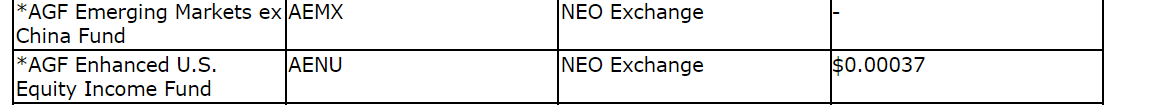The actual taxable amounts for 2023, including the tax characteristics, will be reported in early 2024. Unitholders of record of an AGF Investments ETF on Dec. 29, 2023, will receive the actual 2023 reinvested distributions payable in respect of that AGF Investments ETF on Dec. 29, 2023. Cash distributions for December, 2023, will be reported separately.