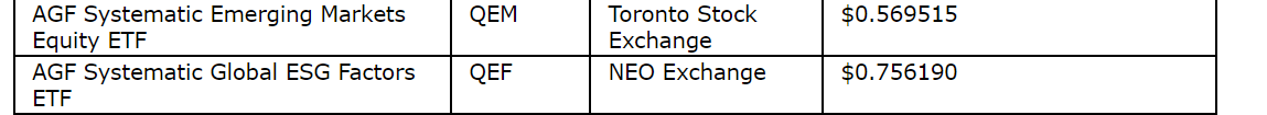 AGF Investments expects to issue a separate press release on or about Dec. 28, 2023, with respect to the final reinvested capital gains distributions for the AGF Investments ETFs.