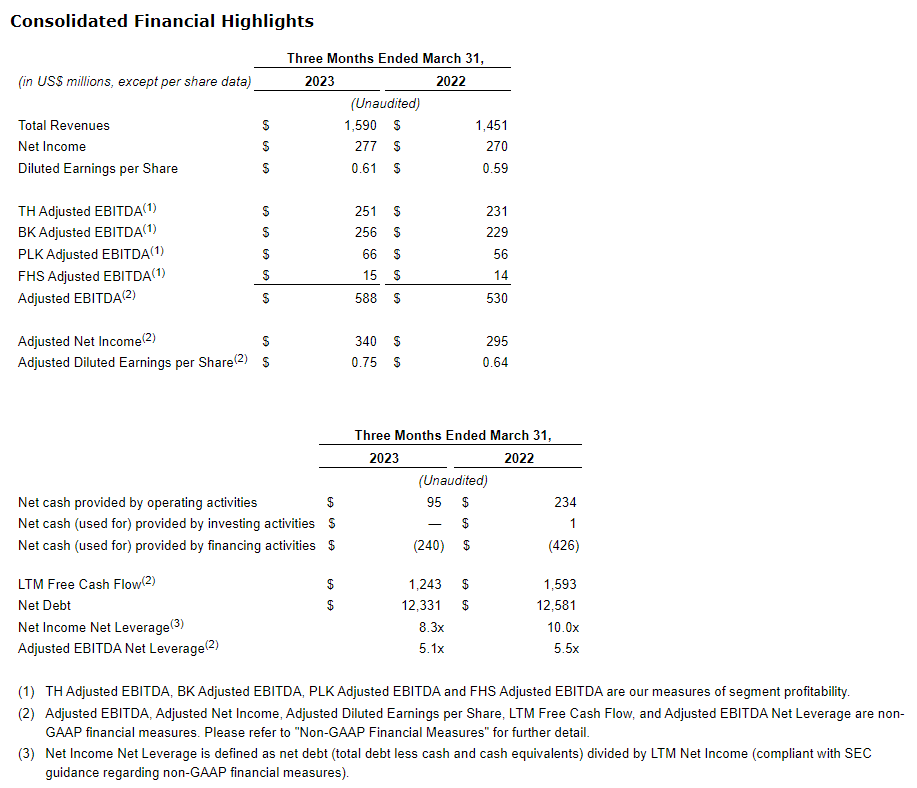 RESTAURANT BRANDS INTERNATIONAL INC. REPORTS FIRST QUARTER 2023 RESULTS