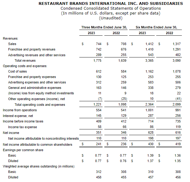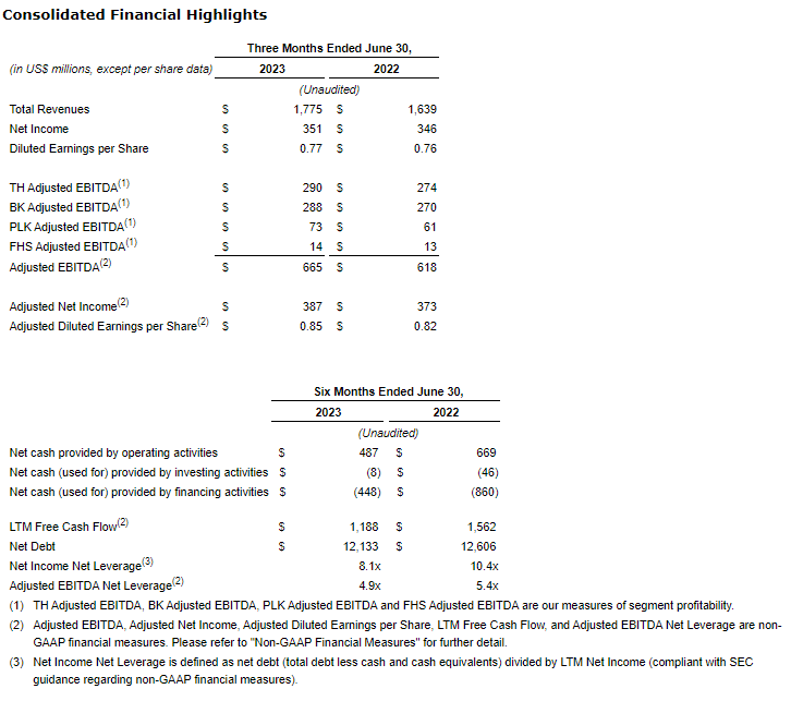 RESTAURANT BRANDS INTERNATIONAL INC. REPORTS SECOND QUARTER 2023 RESULTS