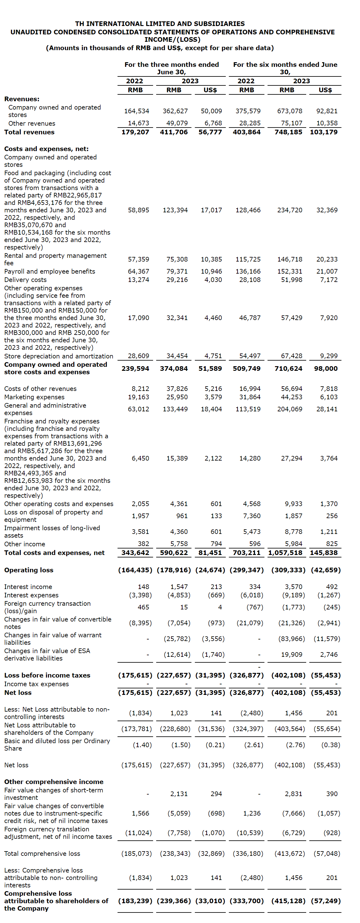 Restaurant Brands International Inc.'s TH International Ltd. has released its unaudited financial results for the second quarter of 2023.
