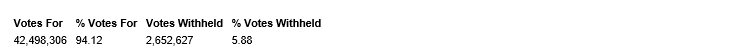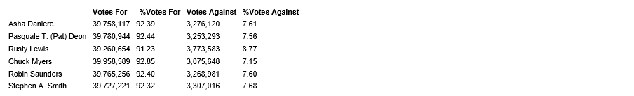 The election of six nominees to Quarterhill's board of directors was approved by shareholders, as detailed in an attached table.