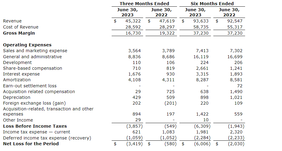 - Global payment solutions revenue increased to $15.1-million compared with $12.4-million for the quarter ended June 30, 2022.