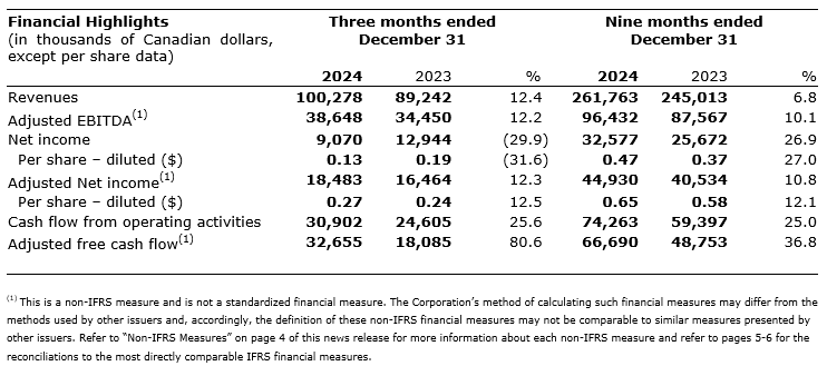On Feb. 6, 2024, the corporation declared a dividend of 7.5 cents per subordinate voting share, variable subordinate voting share and multiple voting share. The dividend will be payable on or around March 15, 2024, to shareholders on record as of Feb. 29, 2024.
