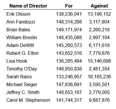 Per TSX reporting requirements, the Company wishes to disclose that the total number of shares represented by shareholders in person and by proxy at the Meeting was 150,536,523 common shares of the Company and 485,000,000 Series A senior preferred shares of the Company, representing approximately 83.42% of the total votes eligible to be cast. The voting results for the election of directors were as follows: