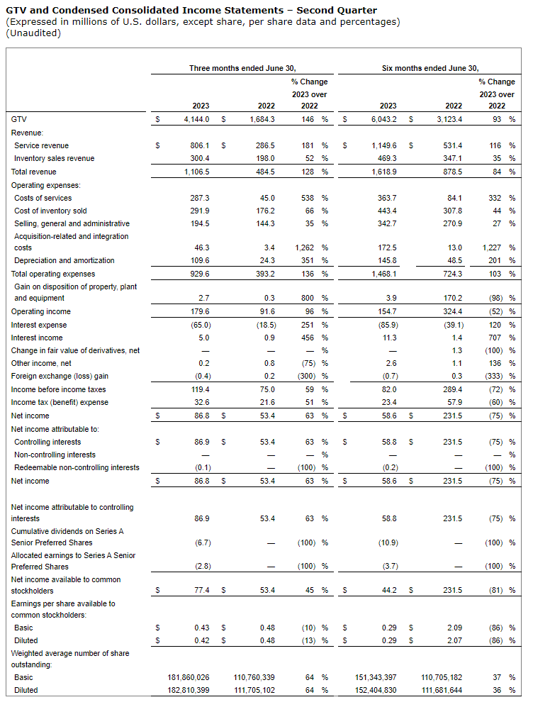 GTV increased 146 per cent year-over-year to $4.1 billion, which includes $2.2 billion from the impact of the acquisition of IAA, Inc. ("IAA").
