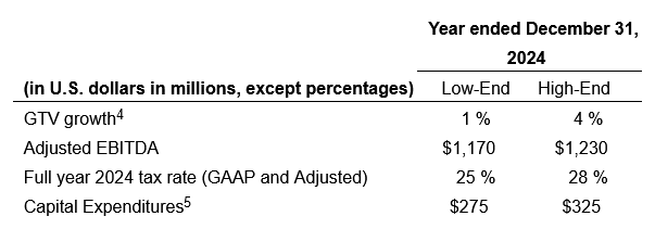 An attached table outlines the company's outlook for select full-year 2024 financial data.