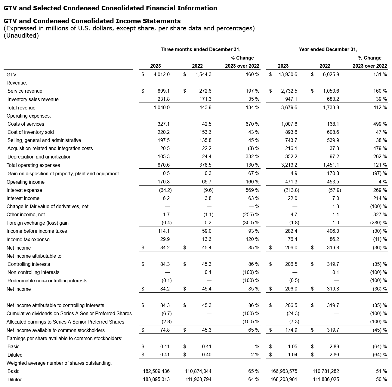 GTV increased 160 per cent year over year to $4-billion, which includes $2.2-billion from the impact of the acquisition of IAA Inc.