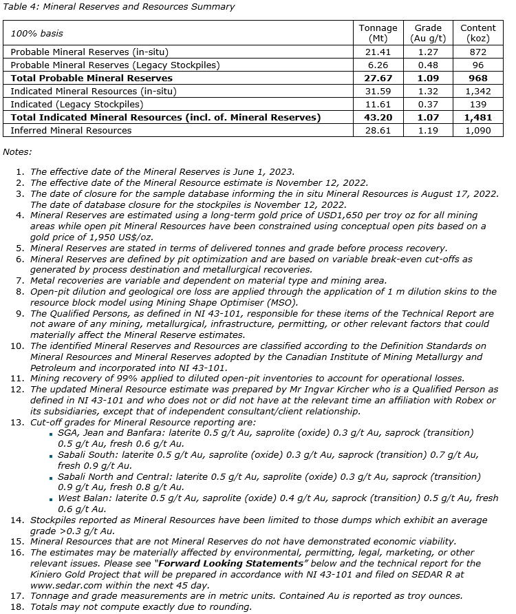 Aurelien Bonneviot, chief executive officer of Robex, commented: "The completion of the FS for the Kiniero gold project is a major milestone in our journey towards project development as the FS optimizations and updated mineral resource estimate result in a stronger project with enhanced economics.