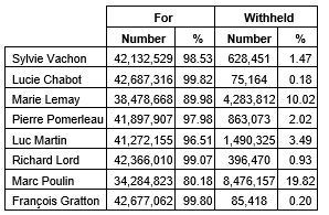 RICHELIEU REPORTS ON SHAREHOLDERS' VOTING RESULTS FOR THE ELECTION OF DIRECTORS