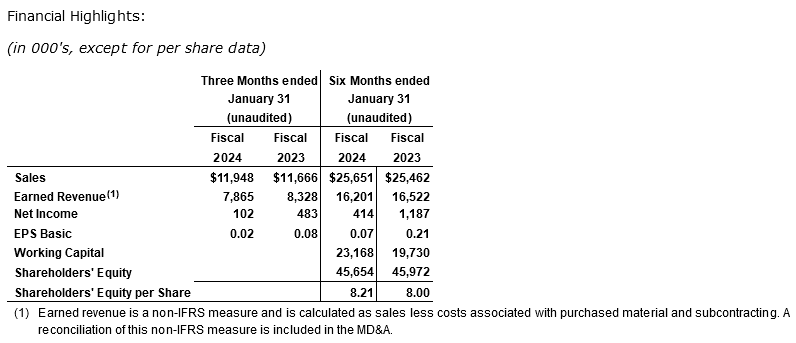 REKO REPORTS RESULTS FOR SECOND QUARTER OF FISCAL 2024