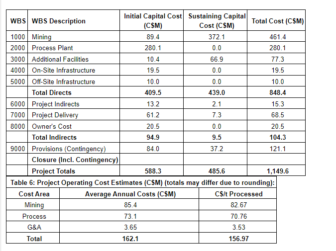 The capital and operating cost estimate was developed in Q4 2023 Canadian dollars. The capital cost summary and the operating cost summary are presented herein.