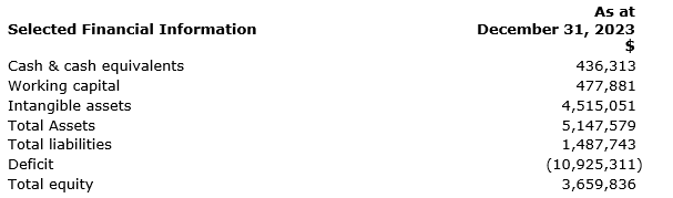 On March 22, 2023, the company announced the receipt of $122,865 in non-dilutive financing from the National Research Council of Canada industrial research assistance program.