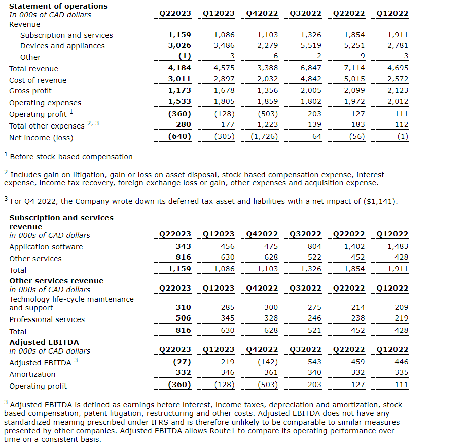 Route1 Inc. today released its financial results for the three- and six-month period ended June 30, 2023.