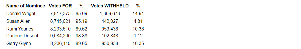 Detailed results of the vote for the election of trustees held at the meeting are set out in an attached table.
