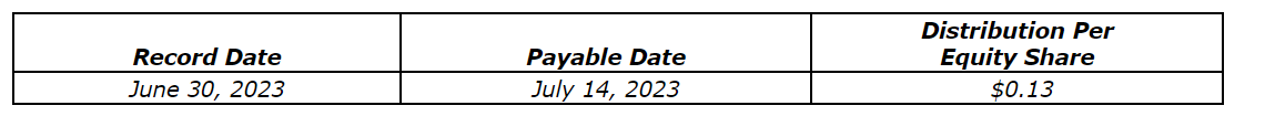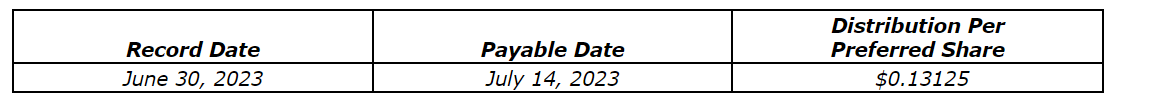 Real Estate Split will also pay a second quarter 2023 distribution to preferred shareholders (see an attached table).