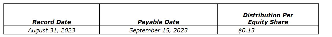 Real Estate Split Corp. will pay a distribution for August, 2023, to Class A shareholders (see an attached table).