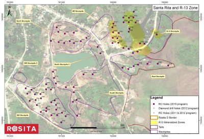 (Figure 1 below details the location of the planned drill holes on the Santa Rita stockpiles.)