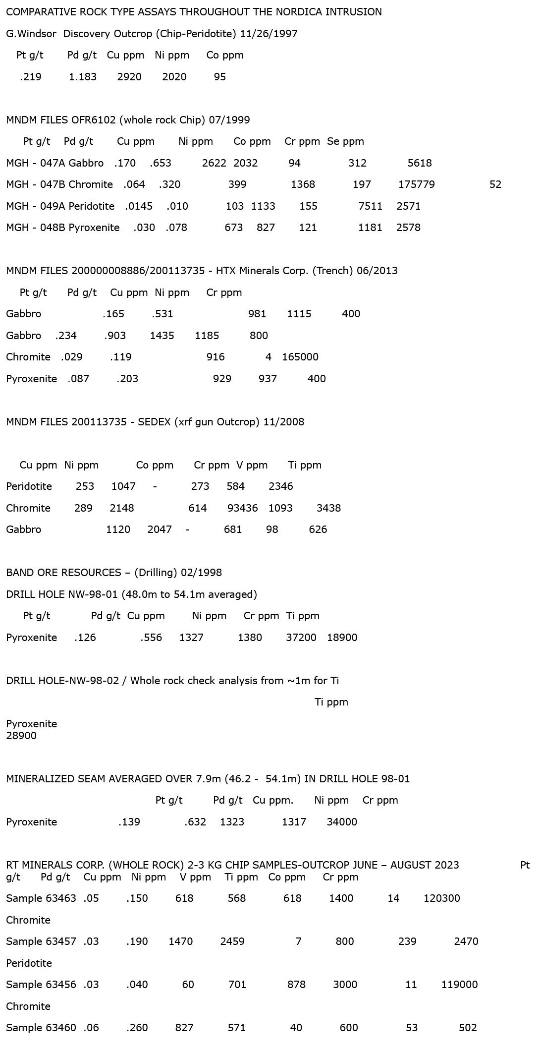 RT MINERALS ANNOUNCES UPDATE AND SUMMARY ON NORDICA PGE PROPERTY, ONTARIO