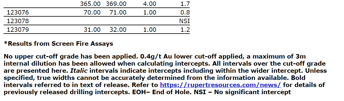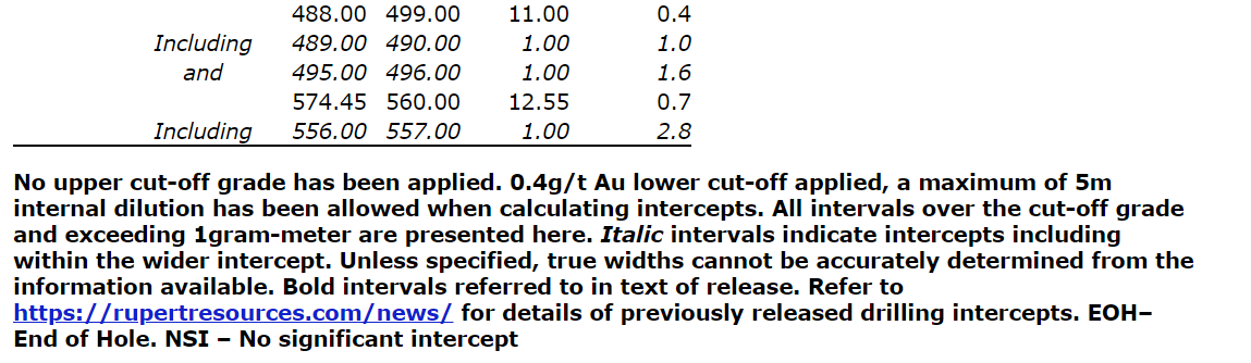 James Withall, chief executive officer of Rupert Resources, commented: