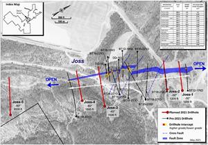 Drilling by contractor Major Drilling America, Inc. is underway and will continue in the Joss area until early August. A map showing the location of the planned drill holes at Joss is presented in Figure 1.