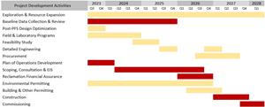 Figure 5 presents a preliminary proposed project schedule that spans from completion of the PFS through construction and commissioning.